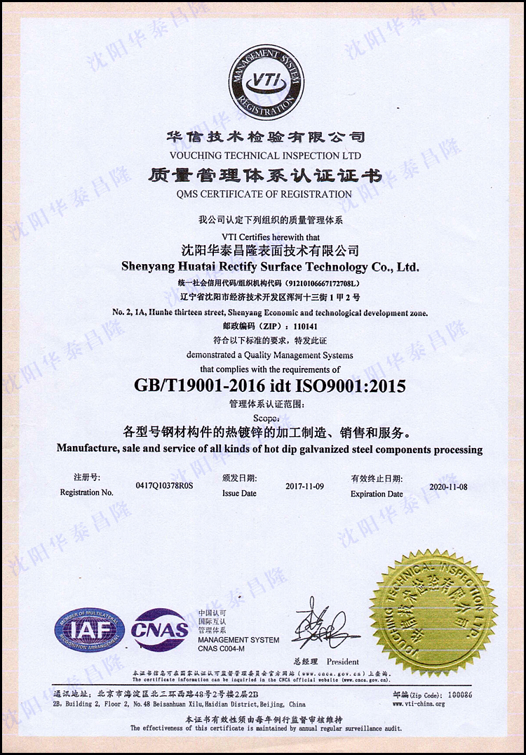 2017年取得ISO9001:2015質(zhì)量管理體系認證證書